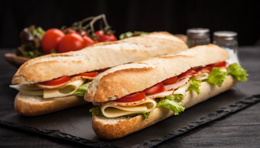 baguete, molho Billy Jack, alface, 250 g de contra file, fatias de tomate e queijo prato.
